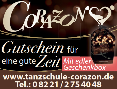 Hier https://www.tanzschule-corazon.de/tanzkurse.html findet ihr alle Paartanzkurse bis einschließlich Januar 2022!